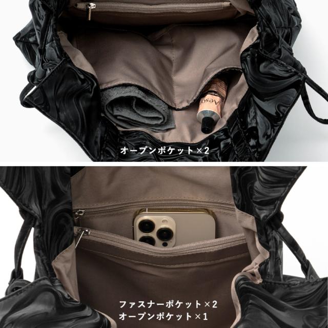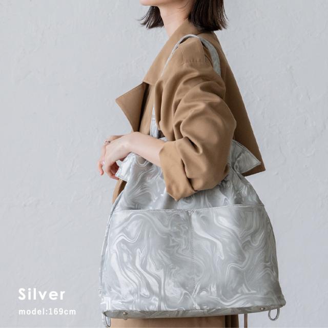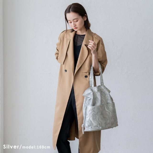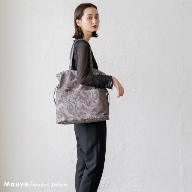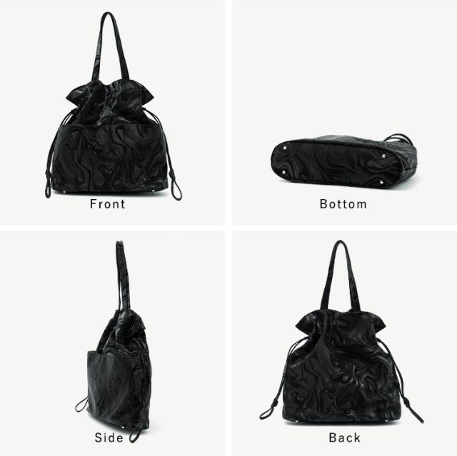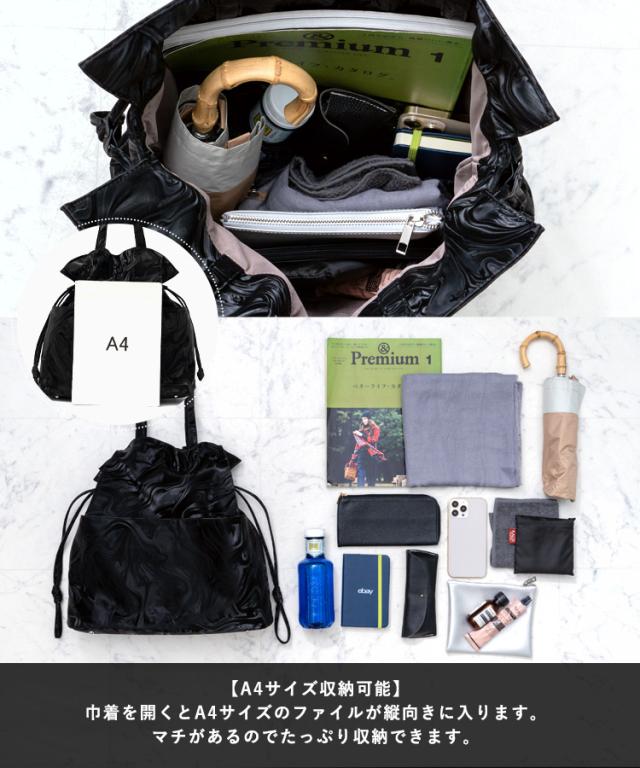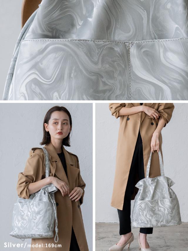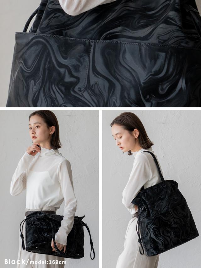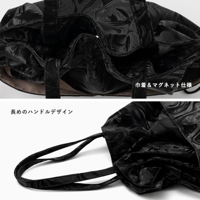 トートバッグ レディース 大きめ 巾着バッグ マーブル模様 バッグ フロントポケット a4 大容量 おしゃれ ロングハンドル 巾着トート inb-10172p 【aroco/アロコ】新生活