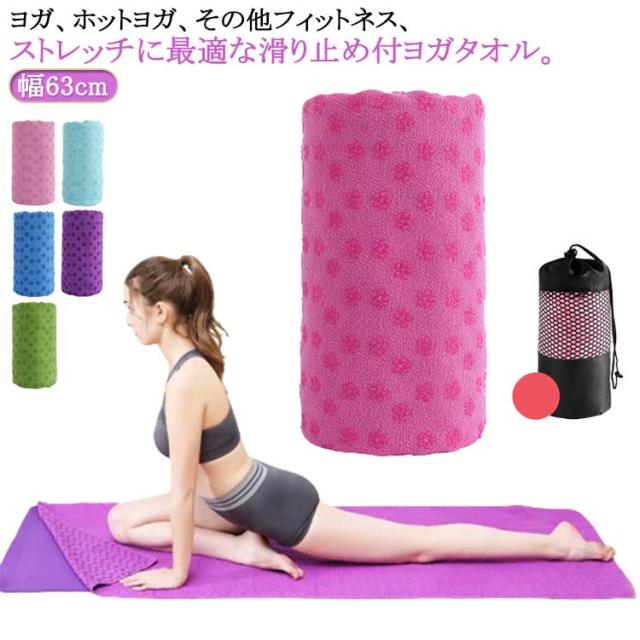 ヨガタオル 滑り止め ヨガ タオル ヨガマット ヨガラグ 幅63cm 滑らない 持ち運び 収納袋付き ウォッシャブル 洗える 大判 折りたたみ 折り畳み フィットネス トレーニング ピラティス 母の日 プレゼント 母の日ギフト