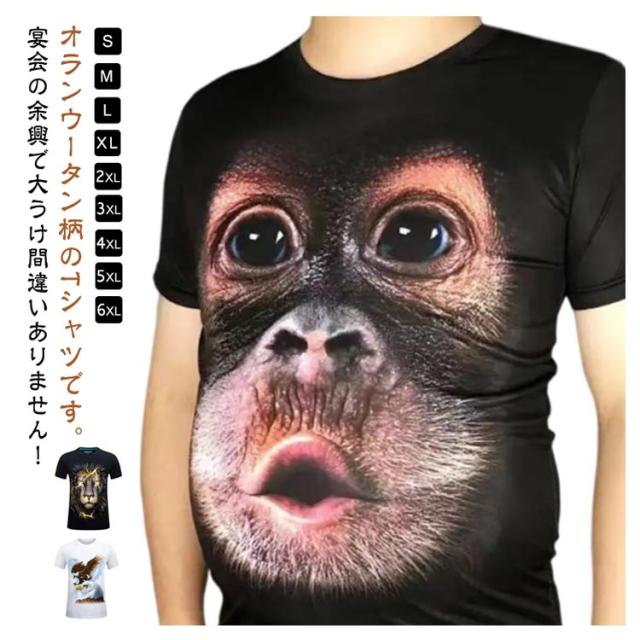 オランウータン柄 Tシャツ メンズ 男性 コスプレ 仮装 犬柄 動物 猿 3D 3d プリント アニマル 動物 パーティー ハロウィン イベント パーティ 面白い 服 おもしろ お祭り 新年会 忘年会 宴会 創意デザイン 男女兼用 春 夏 秋