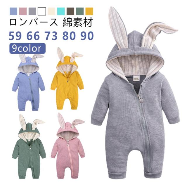 | 【9color】【ロンパース】【59 66 73 80 90】【綿素材】 大人気のさぎ耳ロンパースが選べる9カラーで登場♪ うさぎのデザインがとっても可愛いロンパース♪SNS映えもバッチリ☆ 綿素材で柔らかな肌触りと伸縮性のある生地でストレスフリー! ファスナーデザインでおむつ替えやお着替えも楽々。 裾元と袖口は少し絞り風を通しにくくするデザインなので保温性にも優れています。 今この時の記録に♪出産祝いやプレゼントにも♪ | |