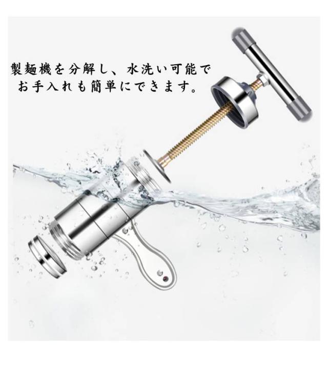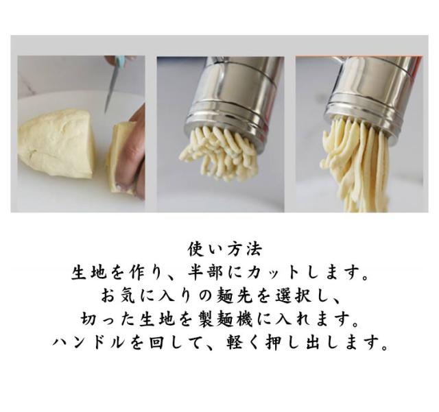 | 自宅で気軽に麺作りが楽しめる!手動式パスタメーカーです。 6種類の麺先付きで、2mm、2.5mm、3.5mm、2×6mm、中空麺(大、小)などお好みに応じて麺のサイズが選択できます。 T字型のハンドルを時計回り回すだけで麺が出てくるので、力を入れずに簡単に使用出来ます。 ステンレス製で耐久性があり、安全で健康的です。 製麺機を分解し、水洗い可能でお手入れも簡単にできます。 そば、中華麺、うどん、ラーメン、生パスタなどご家庭で麺作りを簡単に楽しめます。 | |