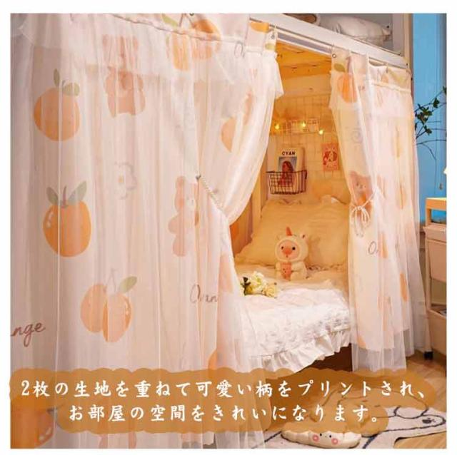 間仕切りカーテン 天蓋付き チュール+布 上段下段用 寝室ベッド 目隠し 2段ベッド用 遮光カーテン 二重構造 学生寮 虫よけカーテン お洒落 厚手 大学生 寝室ベッド お部屋 ベッドカーテン インテリア 取り付け簡単 可愛い