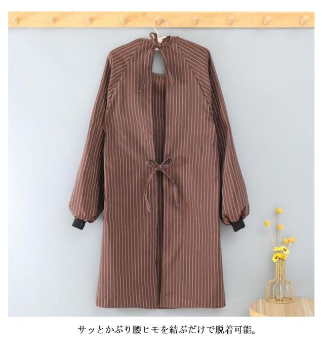 袖付き エプロン メンズ 保育士 後ろ紐留め レディース 大きいサイズ ストライプ柄 長袖 ポケット付き 割烹着 料理教室 割烹着 キッチン 汚れ防止 ガーデニング 防油 作業用 ワーク服 男女兼用