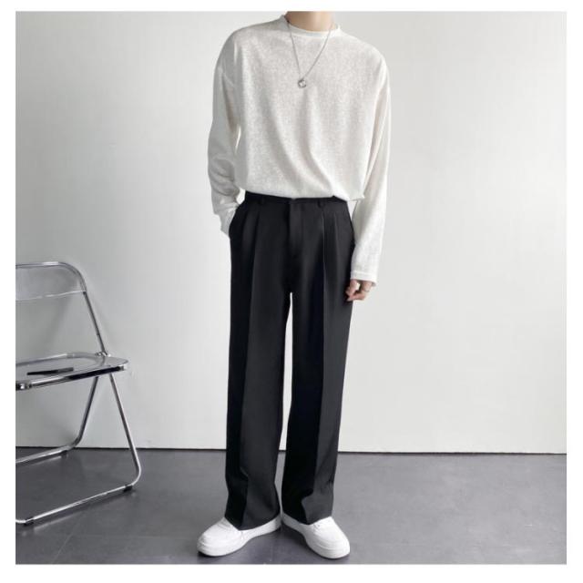 春服 ワイドパンツ ゆったり 春秋 スラックス ロングパンツ メンズ お洒落 長ズボン 大きいサイズ ワイドパンツ ストレート 無地 カジュアル 韓国風 ボトムス お洒落 フォーマル ビジネス 紳士服