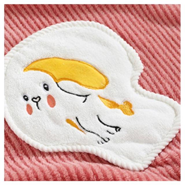 | ふわふわで気持ちよく、吸水性抜群なお風呂上がりウエア。 プルオーバー式で頭からかぶるだけで使えるので安心。 湯冷めすること無くお子様のお世話も出来て、忙しいお母さんにもピッタリ♪ リラックスタイムのルームウェアでパジャマとしての使用も◎ | |
