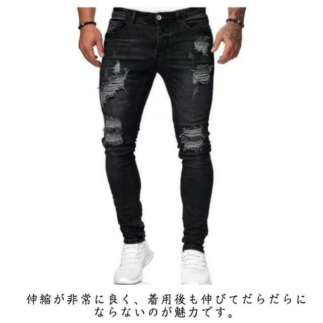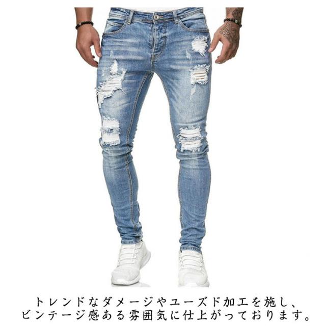 メンズ デニムパンツ 春夏 スキニーデニム スキニー ジーンズ ストレッチ 伸縮性 ダメージジーンズ ジーパン ダメージ 秋冬 美脚 細身 トレンド