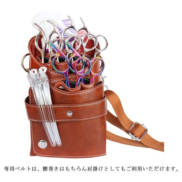 プロ仕様 6丁入 シザー シザーケース PU 理容師 スキバサミ 防水 フローリスト フラワーショップ 花屋 シザーポーチ 腰巻き 散髪 理容師 トリマー ハサミ 美容師 ケース シザーバッグ レザーバッグ トリマー フローリスト