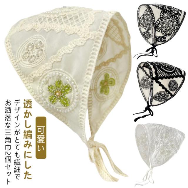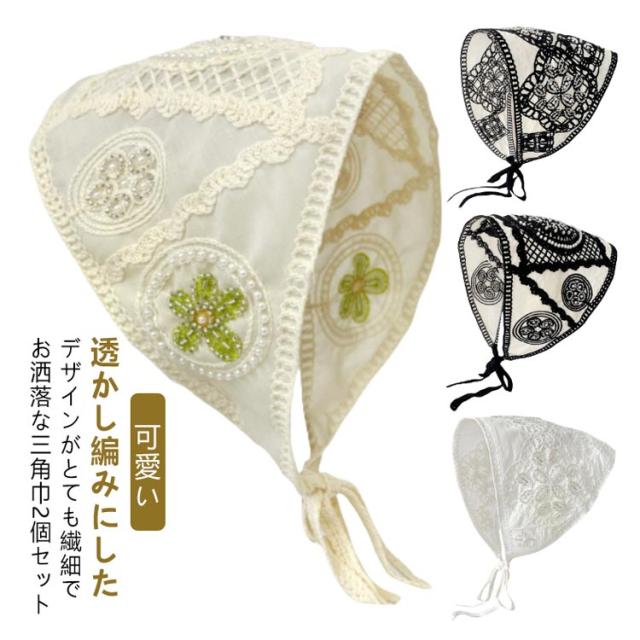 | 透かし編みにしたデザインがとても繊細でお洒落な三角巾2個セット。 小顔効果抜群、フランスのレトロな美しさを醸し出し、服装に優雅さを加えるのに最適です。 コンパクトになりますので持ち運びにも便利。 | |