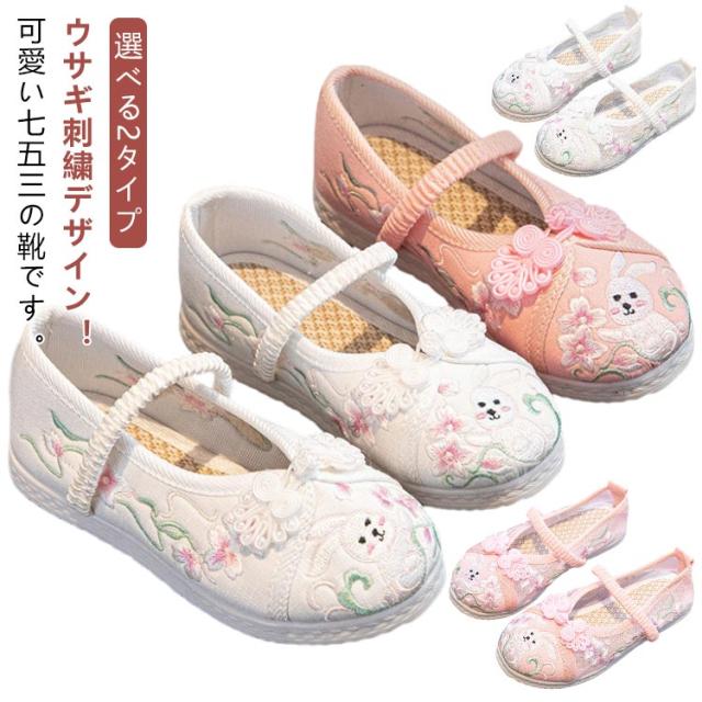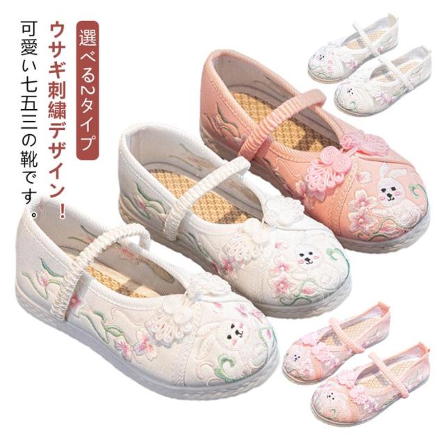 七五三 履物 草履 女の子 ホワイト 痛くない 赤ちゃん キッズ シューズ 靴 ウサギ刺? ピンク 七五三 柔らかい 刺繍 和装 和服 子供靴 お正月 軽量 楽ちん おしゃれ チャイナ靴 歩きやすい 着物 漢服 ウサギ刺? 唐装