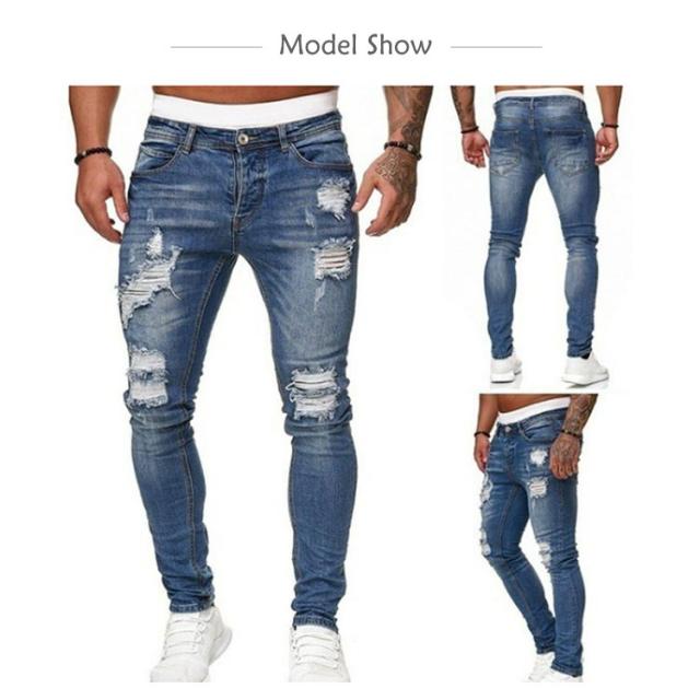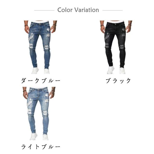 ダメージ 美脚 ジーパン デニムパンツ ストレッチ スキニーデニム スキニー 伸縮性 ダメージ メンズ 春夏 秋冬 ダメージジーンズ 細身 トレンド