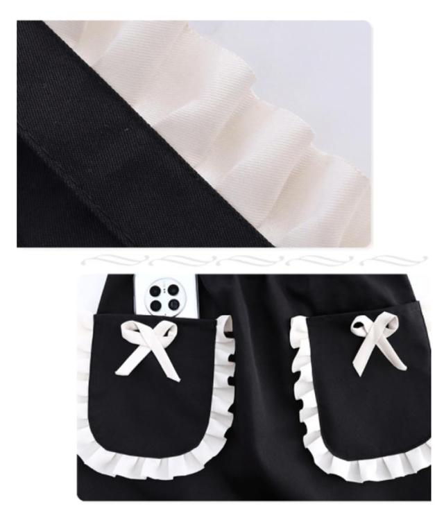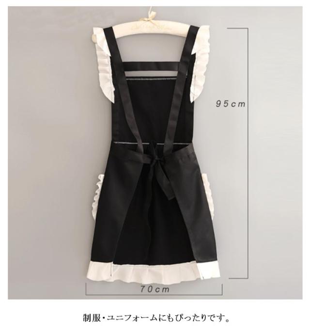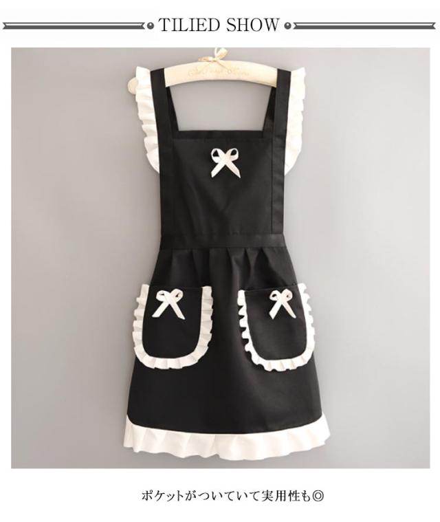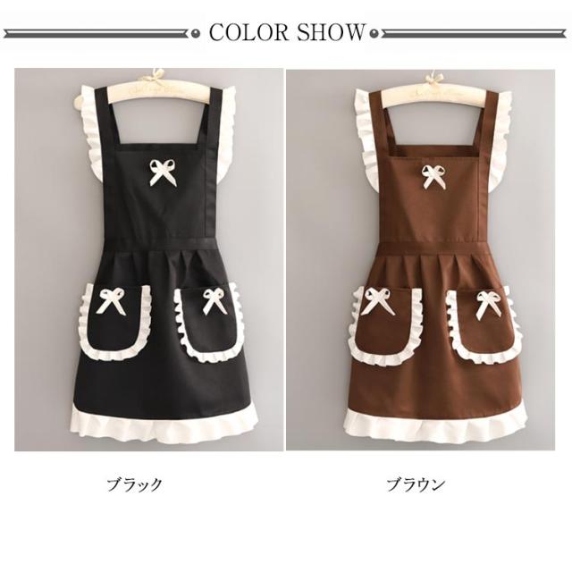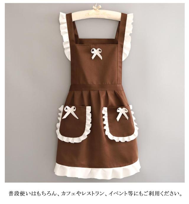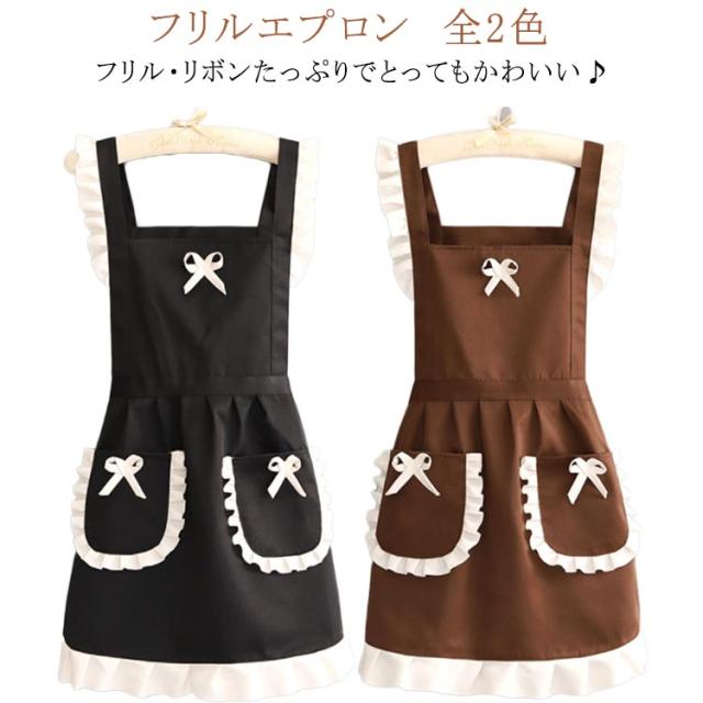 レストラン メイド フリルエプロン カフェ ワンピースエプロン 膝下 おしゃれ フリル 女性用 エプロン かわいい ポケット付き おしゃれ リボン 撥水 制服 コスプレ ユニフォーム レディース 大人 フリルエプロン ブラック ブラウン