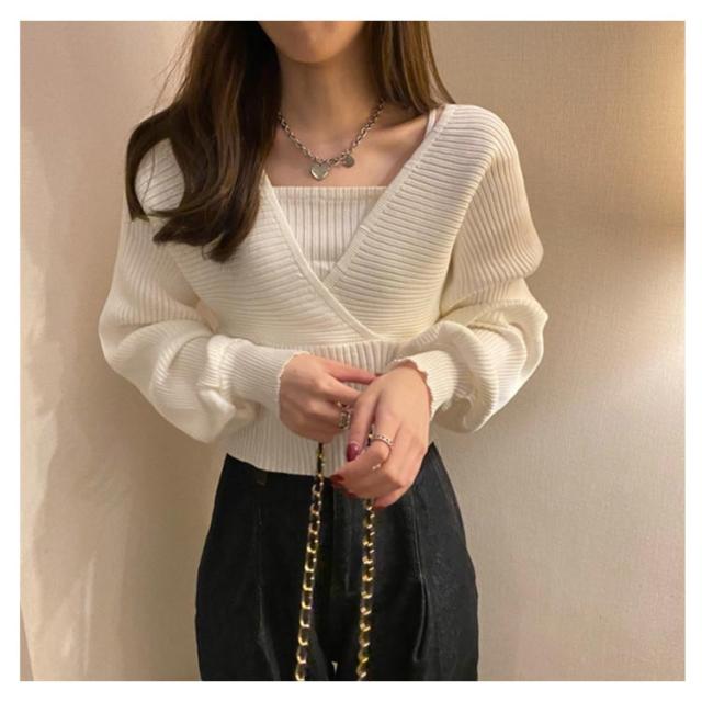 | 話題のレイヤード風ニットトップス。 プルオーバー&キャミソールを組み合わせたレイヤード風のトップスで、洒落感を高める。 ふんわりと広がるバルーンスリーブが可愛らしさをさらにアップデート。 ニットなので伸縮性もあります。 タックインしなくてもすっきり見える丈感がうれしい。 | |