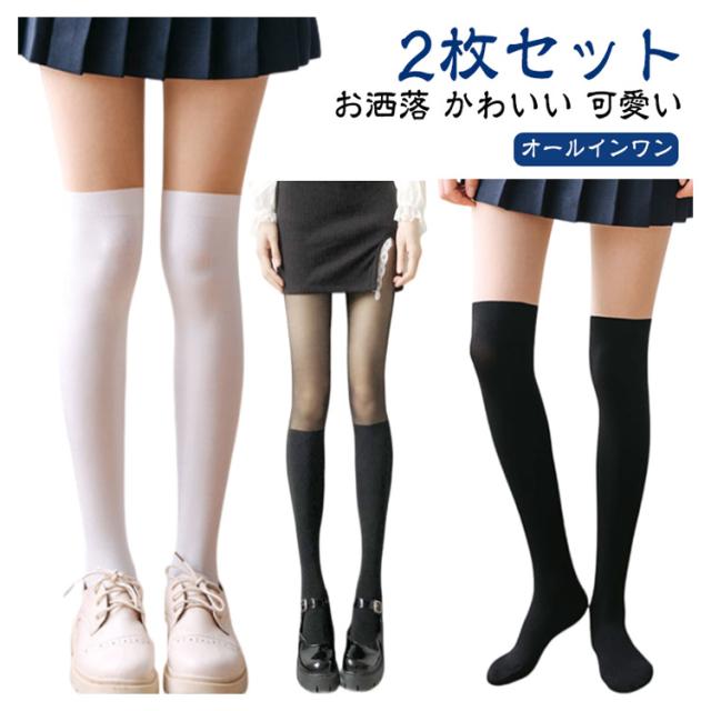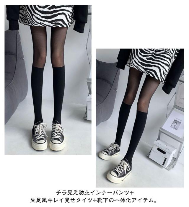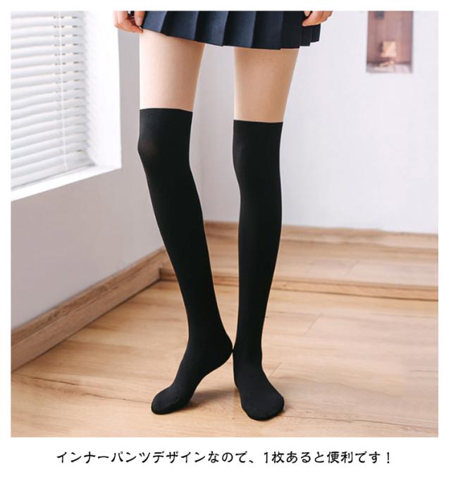 | 【オールインワン】【2枚セット】 オールインワンのソックス風ストッキングで落ちないニーハイ! チラ見え防止インナーパンツ+生足風キレイ見せタイツ+靴下の一体化アイテム。 ストレッチ生地はぴったりフィットでまるでホントに生足みたいに見せる自然な素肌感で。 インナーパンツデザインなので、1枚あると便利です! | |