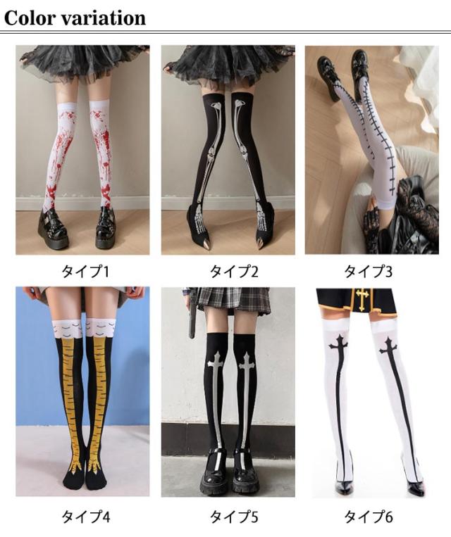仮装 ハロウィン ソックス ハイソックス 舞台 コスプレ 衣装 ニーハイソックス ハロウィン 面白い 余興 パーティー ナース スケルトン コウモリ 血痕 骨 クロス 蜘蛛の巣 血 血まみれ 靴下 ハロウィン 血糊 血のり 返り血 プリント