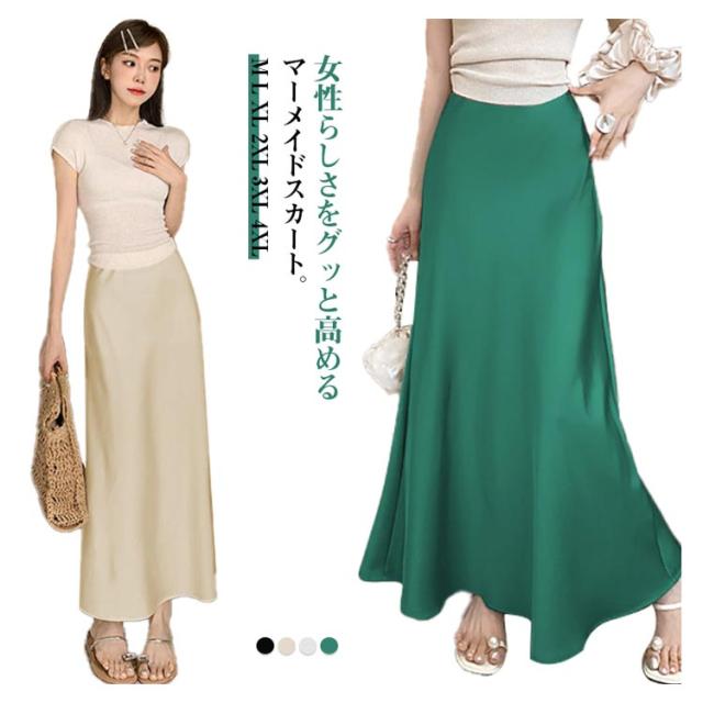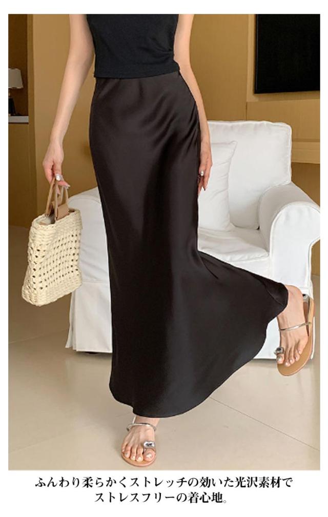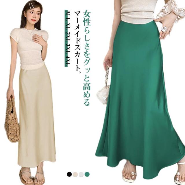 フレア タイトスカート スカート ロング 夏 春 レディース マーメイドスカート マーメイド スカート ウエストゴム マーメイド ストレッチ 細見え ウエストゴム 伸縮性 スタイルアップ 美シルエット ボトムス 仕事 オフィス 上品 低身長