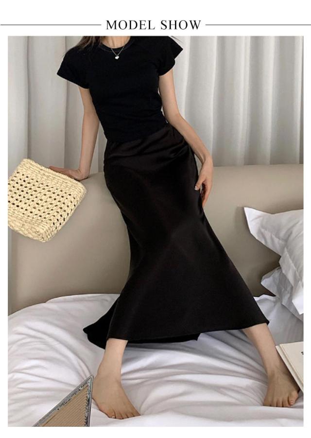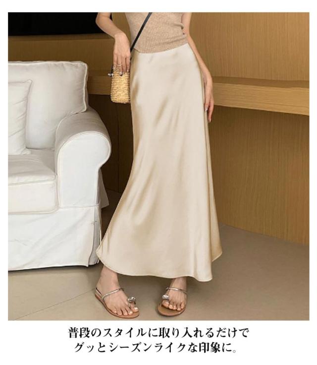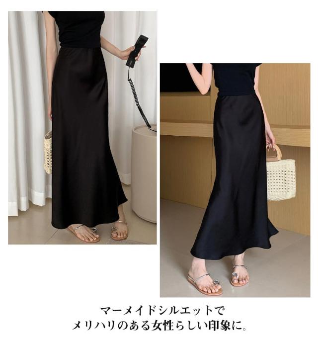 | 女性らしさをグッと高めるマーメイドスカート。 マーメイドシルエットでメリハリのある女性らしい印象に。 ウエストはゴム仕様なのでお腹周りの窮屈感もなく楽ちん。 ふんわり柔らかくストレッチの効いた光沢素材でストレスフリーの着心地。 普段のスタイルに取り入れるだけでグッとシーズンライクな印象に。 デイリー使いからオフィスコーデまでコーディネートしやすいアイテムです。 | |