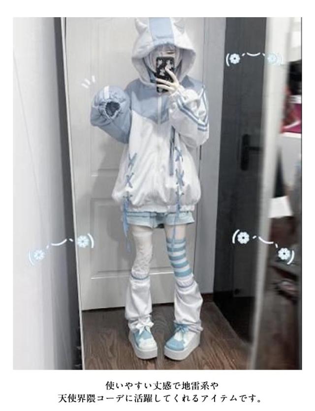 原宿系 ジャージパーカー 天使界隈 長袖 サブカル レディース ジャージ 量産型 水色界隈 地雷系 ジャージジャケット トップス 天使 原宿 ブルゾン ファッション ユニックセス メンズ 水色 かわいい 病み 大きいサイズ 個性的 かわいい ブルー サブカル 仮装