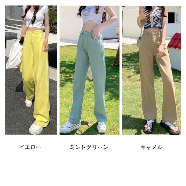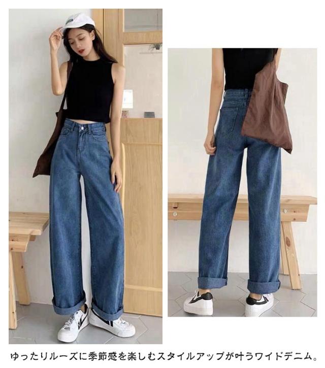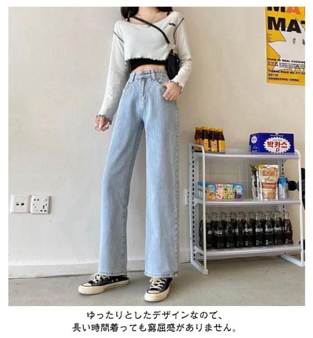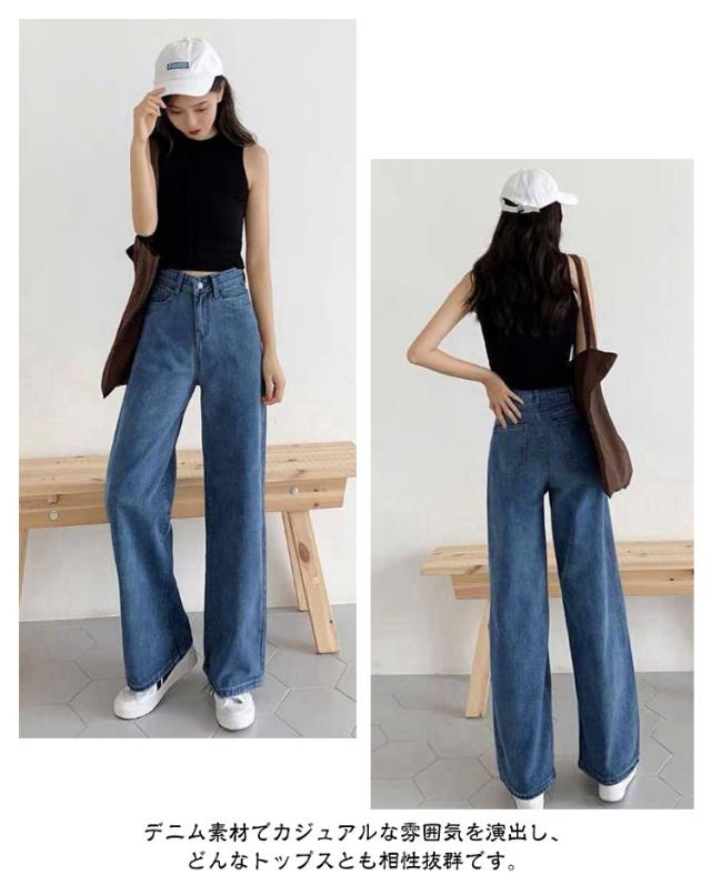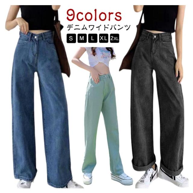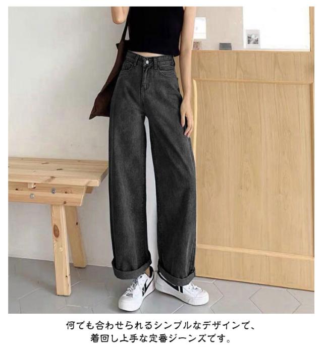 デニムパンツ ゆったり 股上深め ジーンズ 韓国ファッション ハイウエスト パンツ 春夏秋冬 きれいめ 美脚 レディース 大きいサイズ ボトム デニム ストレート 美脚 体系カバー ワイドパンツ 華奢見え 着痩せ 脚長効果