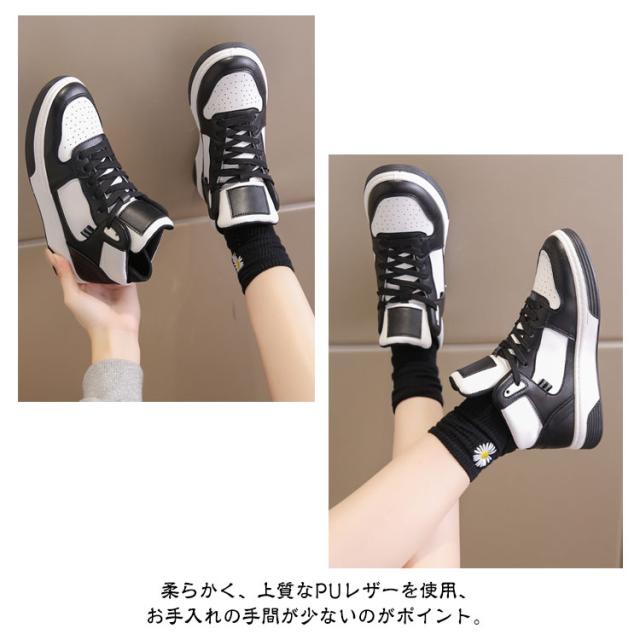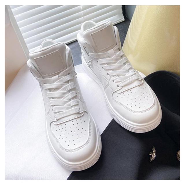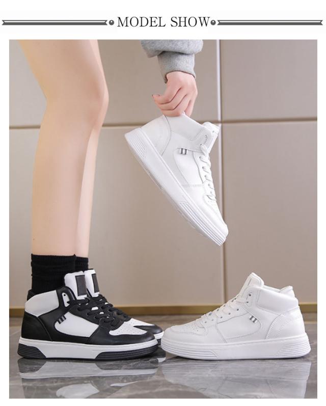 | どんなスタイルにもマッチできるハイカットスニーカー。 柔らかく、上質なPUレザーを使用、お手入れの手間が少ないのがポイント。 ハイカット仕様で足首細見え、足長効果をアップ。 クッション性の高いソール、歩行時の衝撃を吸収し優しく足を保護、曲げたり、走り回ったりが楽々、快適な歩行をサポート。 オフィスや日常生活で気軽に履ける厚底スニーカーです。 | |