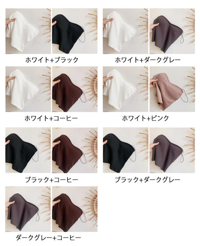 | 色 | ホワイト(2枚セット) ブルー(2枚セット) ピンク(2枚セット) ダークグレー(2枚セット) ブラック(2枚セット) コーヒー(2枚セット) ホワイト+ブラック ホワイト+ダークグレー ホワイト+コーヒー ホワイト+ピンク ブラック+コーヒー ブラック+ダークグレー ダークグレー+コーヒー |