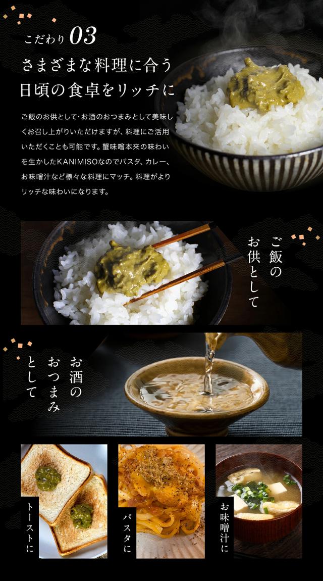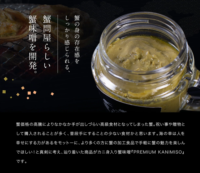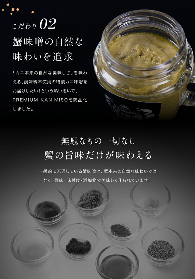 - ちゃんとしたカニ味噌の味を堪能したくて、選ぶのに悩みましたが、満足なカニ味噌の味でした。こちらにして良かったです。
