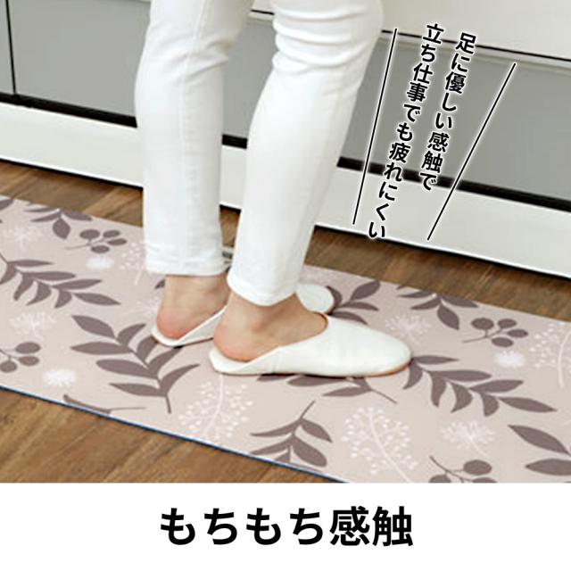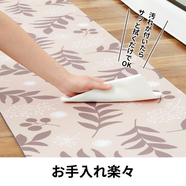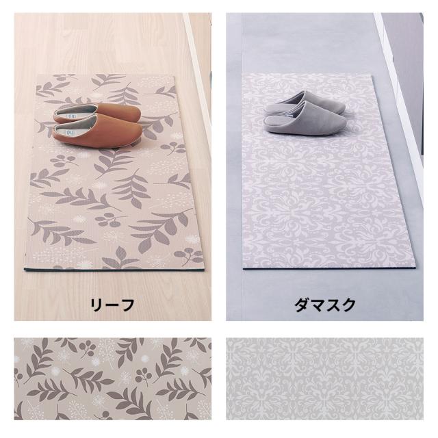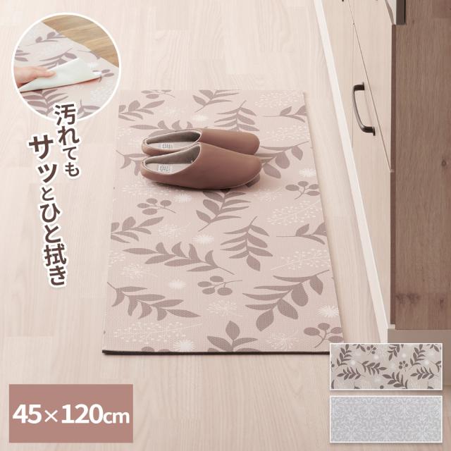 拭ける キッチンマット 45×120cm リーフ 植物 / ダマスク 模様 | フロア リビング フローリング 玄関 寝室 もちもち クッション 汚れ防止 キズ防止 ナチュラル おしゃれ もっちり お手入れ簡単 足に優しい 疲れにくい カーペット