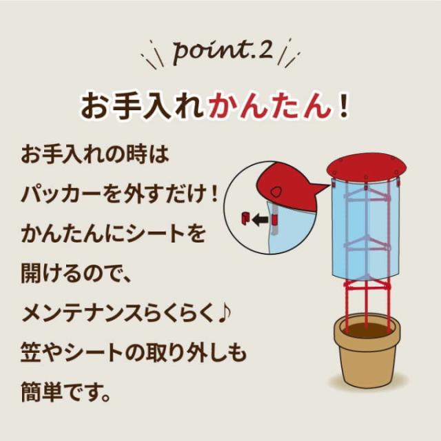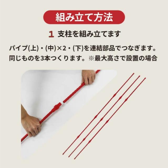 ジョイント式パイプで、成長にあわせて高さを調節できます。
