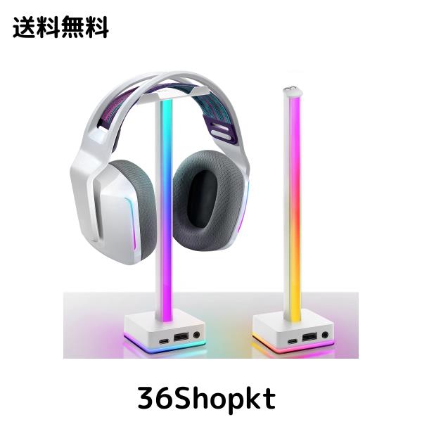 EZDIY-FAB 卓上 ヘッドホンスタンド USB LED デスクトップライト ヘッドセットスタンド 組み立て簡単 ヘッドセット テーブル 収納対策 PC