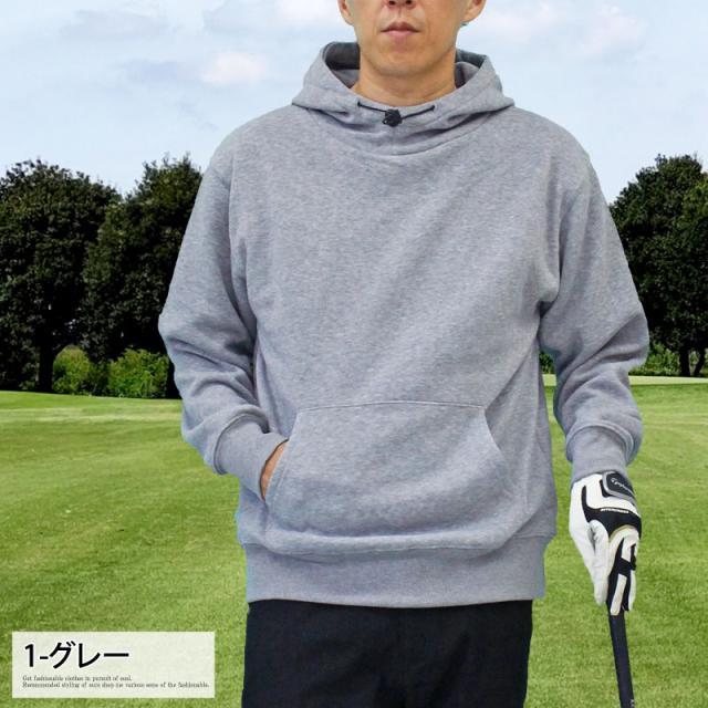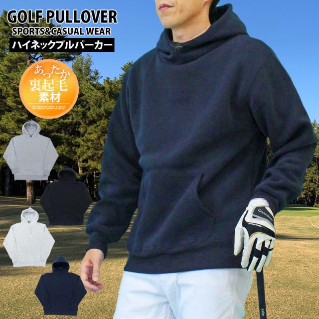 送料無料 ゴルフウェア メンズ パーカー 裏起毛 スウェット トレーナー トップス プルオーバー ハイネック 秋冬