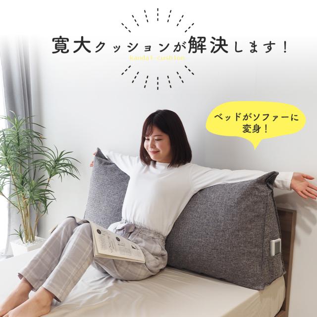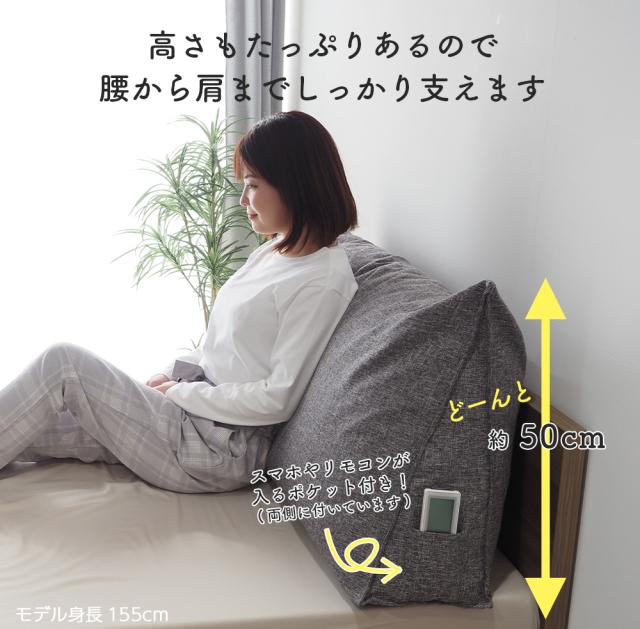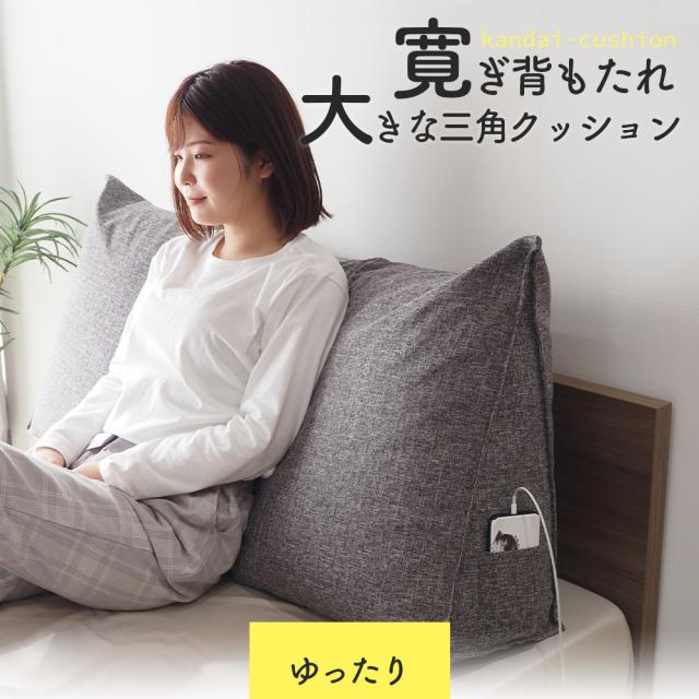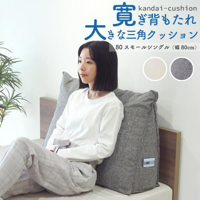 クッション スモールサイズ(幅80cm) 背もたれ 背もたれクッション 三角クッション ベッド ベッドサイズ 読書 映画鑑賞 寝ながら スマホ 大きい 寛大クッション グレー エクリュ