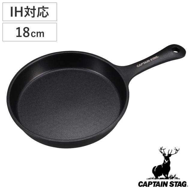 アルミ スキレット18cm IH対応 キャプテンスタッグ ( CAPTAIN STAG マルチ グリル プレート アルミ製 フライパン キャンプ アウトドア キャンプ飯 焚火 ガス火対応 IH オール熱源対応 軽量 丸型 )