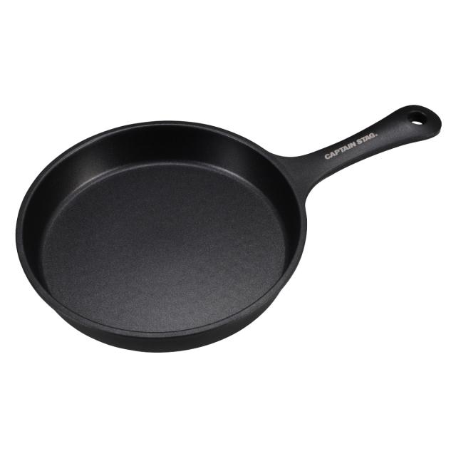 アルミ スキレット18cm IH対応 キャプテンスタッグ ( CAPTAIN STAG マルチ グリル プレート アルミ製 フライパン キャンプ アウトドア キャンプ飯 焚火 ガス火対応 IH オール熱源対応 軽量 丸型 )