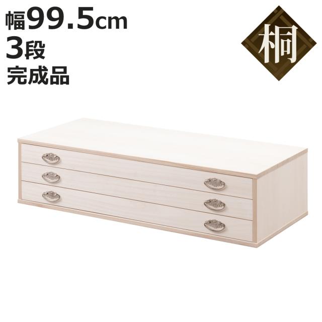 桐タンス 幅99.5cm 上置き3段 シルバー金具 完成品 日本製 ( 桐 たんす 上置き チェスト 収納 天然木 国産 家具 積み重ね 引き出し 三段 生地仕上げ たとう紙が入る 木製 シンプル ナチュラル )