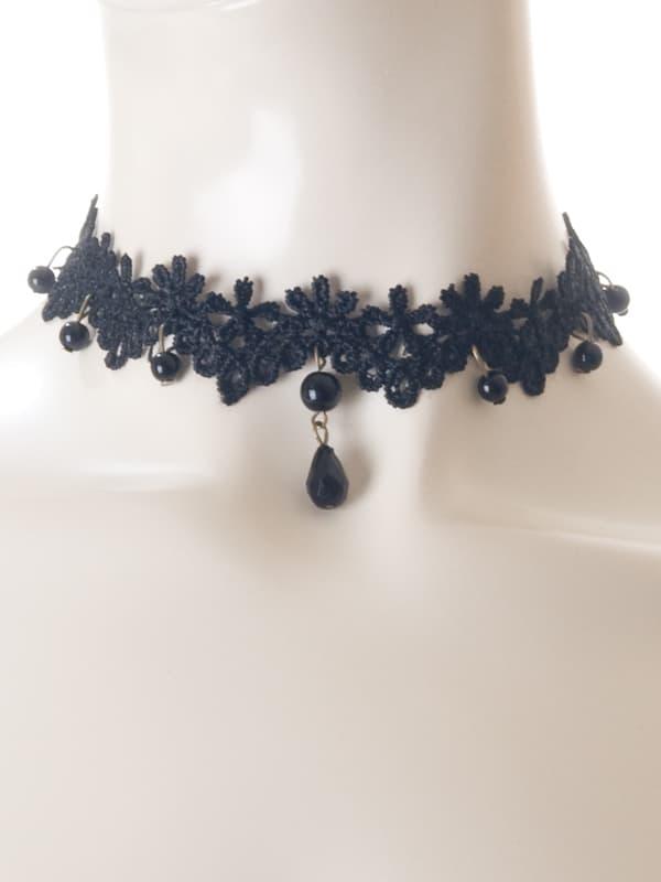 フラワー レース ビーズ ティアドロップ チョーカー ネックレス パール アクセサリー コスプレ コスチューム セクシー ランジェリー 下着 女性 レディース 勝負 過激 グッズ おもちゃ エロ かわ エッチ エロい エッチな sexy