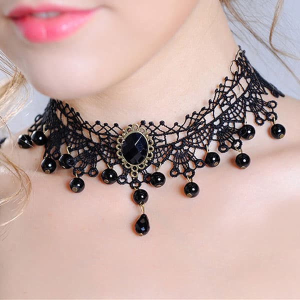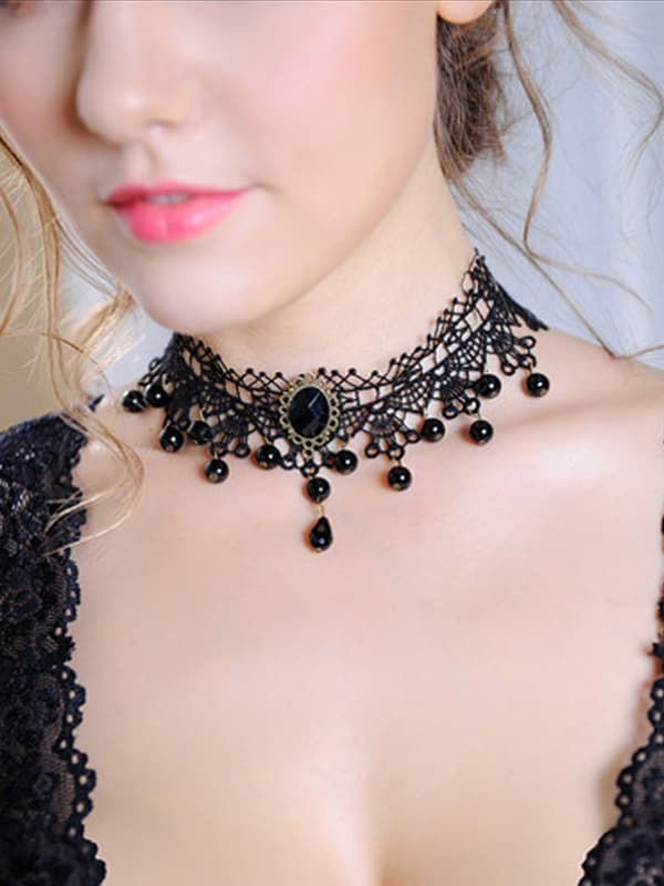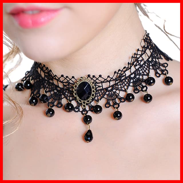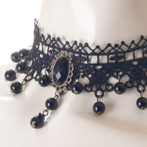 夜を彩るティアドロップとビーズのレースチョーカー!