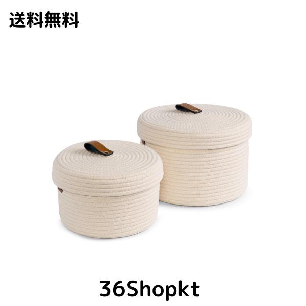 YEARONAN ふた付き収納バスケット 化粧品収納バスケット 天然コットンロープ素材 抗菌 洗える 装飾バスケット おもちゃ収納ボックス レザ