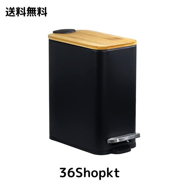 ゴミ箱 ふた付き 5L スリム ペダル式 ゴミ箱 角型 竹蓋 おしゃれ ごみ箱 消臭 密閉 音無し キッチン/リビングルーム/トイレ/バスルーム/