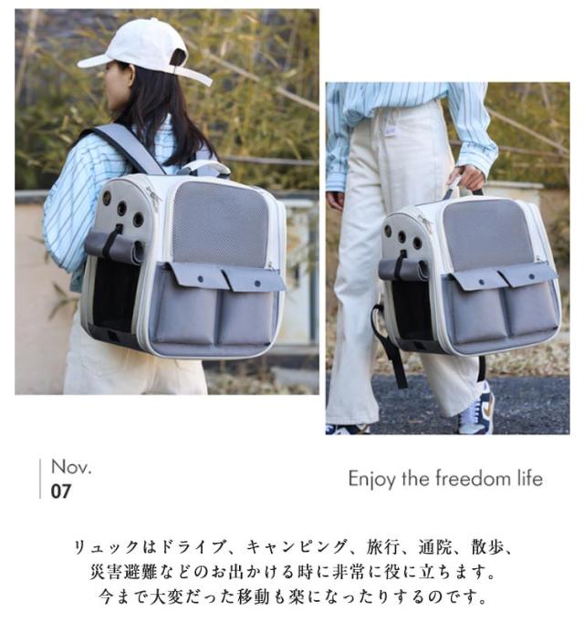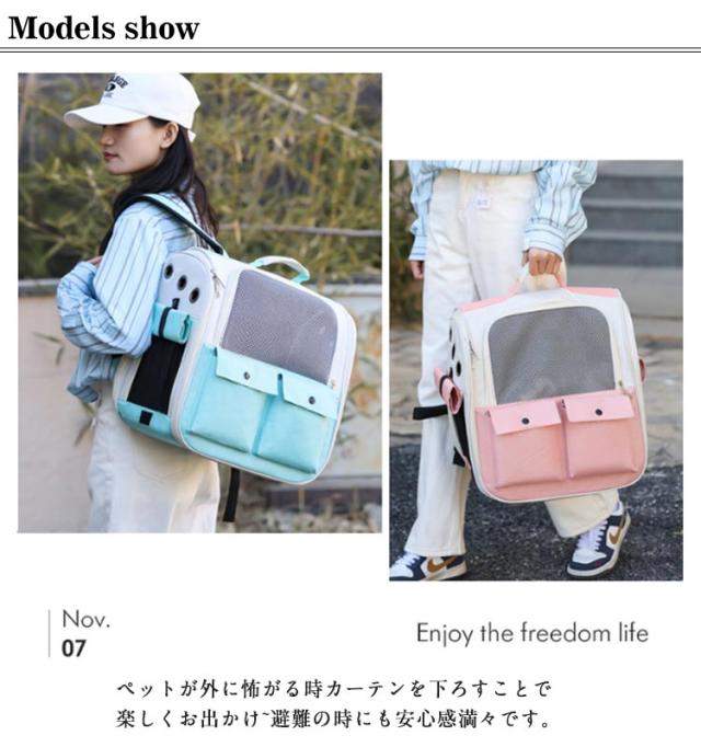 | 大容量で軽量のキャリーバッグ。 【通気性が良い】メッシュ窓が付き、通気性抜群、大事なペットに新鮮な空気を充分与えてくれて外から見られるので安心です。ペットが外に怖がる時カーテンを下ろすことで楽しくお出かけ~避難の時にも安心感満々です。 【持ち運び便利】リュックはドライブ、キャンピング、旅行、通院、散歩、災害避難などのお出かける時に非常に役に立ちます。今まで大変だった移動も楽になったりするのです。 | |