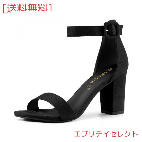 [Allegra K] アンクルストラップ サンダル バックル ハイヒール チャンキーヒール レディース ブラック 26.0 cm