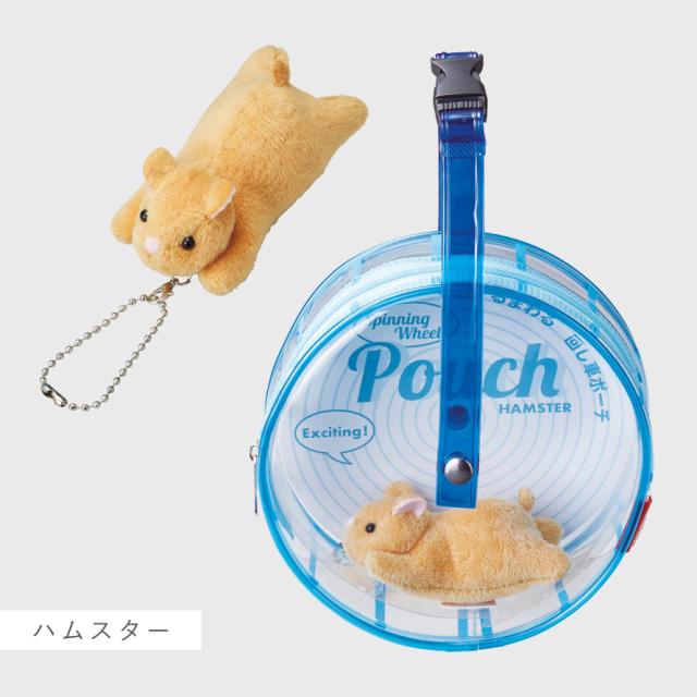 ビニールポーチ 透明 ポーチ ぬいぐるみ ビニール 動物 かわいい ハムスター ハリネズミ リス グッズ くるくる回る 回し車モチーフのビニールポーチ
