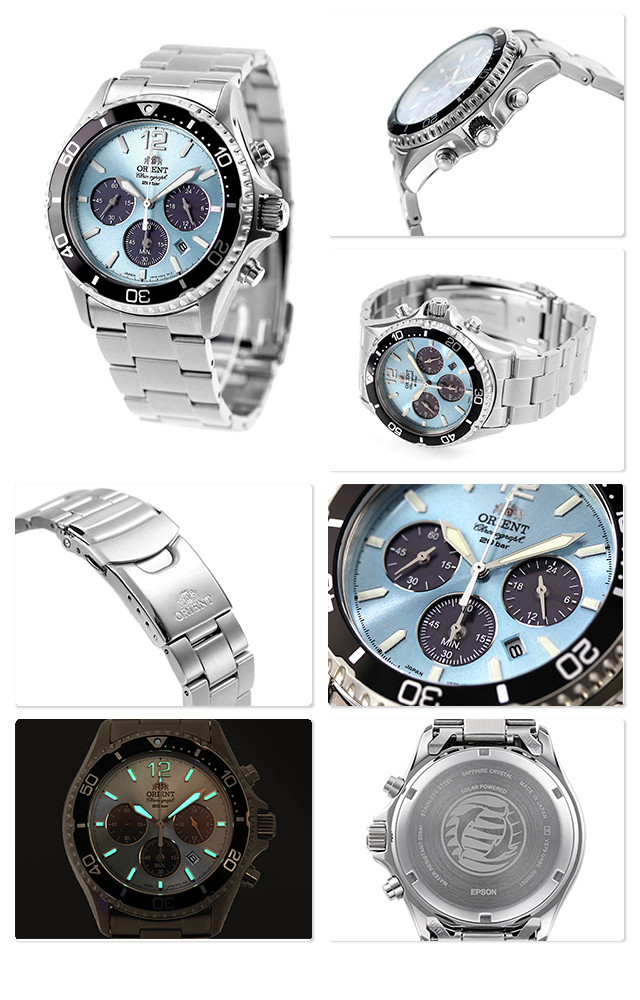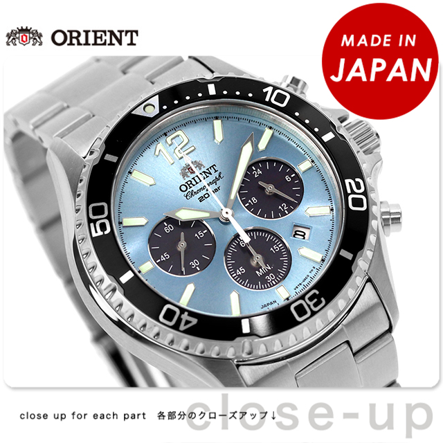 オリエント スポーツ スポーツ オリエントマコ ソーラーパワード クロノグラフ ソーラー 腕時計 ブランド メンズ クロノグラフ ORIENT SPORTS RN-TX0206L アナログ アイスブルー 日本製