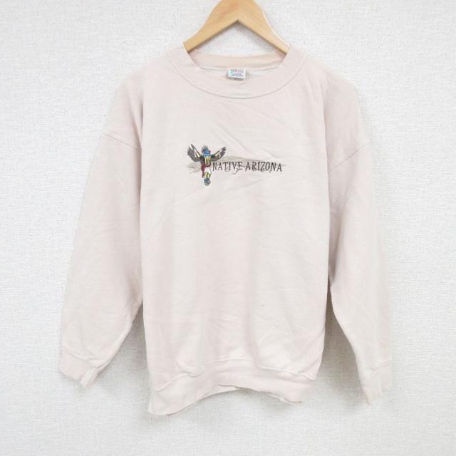 古着 長袖 スウェット メンズ 00年代 00s アリゾナ 刺繍 クルーネック 薄ピンク Lサイズ 中古 スエット トレーナー トップス 中古 古着