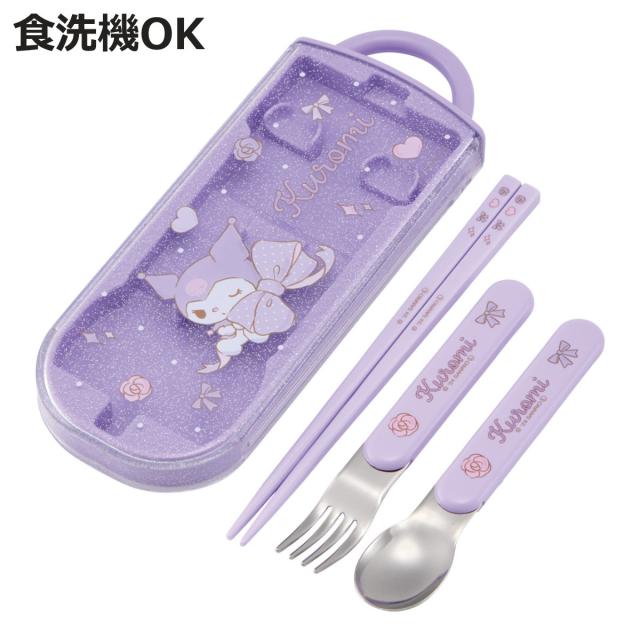 《 LH15670 クロミちゃん KUROMI サンリオ SANRIO キャラ キャラクター 女の子 女子 男の子 男子 携帯用カトラリー 持ち運び お弁当用 携帯用 ケース付き トリオ セット 入園 準備 入学 小学生 運動会 遠足 ランチグッズ お弁当グッズ 子ども こども スケーター skater TACC2AG 》
