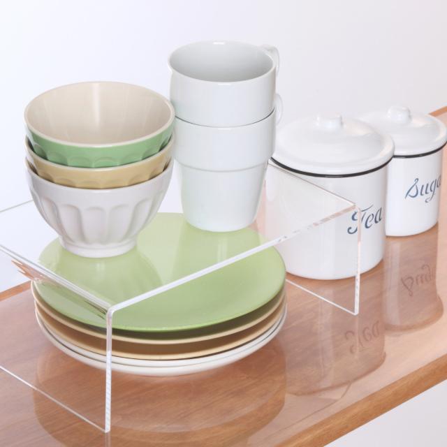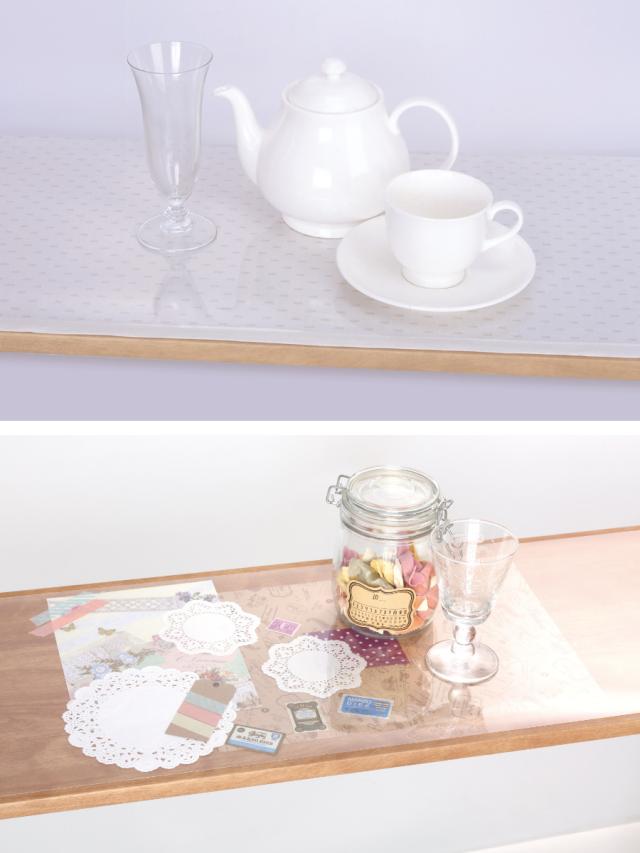 棚板やこだわりのインテリアの雰囲気を壊さず敷ける透明の食器棚シートです。食器棚をキズ、汚れから守ります。