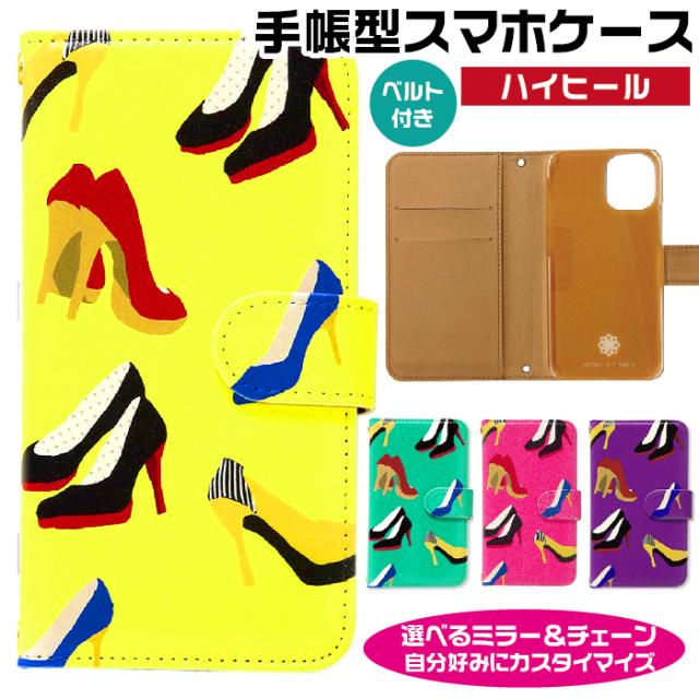 | スマホケース 手帳型 ベルト付き ハイヒール iPhone 全機種対応 ストラップ ショルダーチェーン ミラー | |