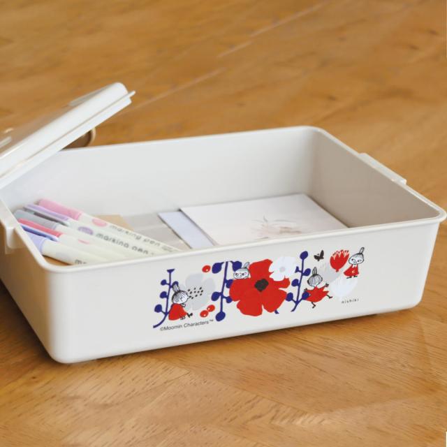 《 LH16591 幅27.5×奥行19×高さ8.5cm 蓋 ふた フタ お道具箱 裁縫道具 救急箱 薬箱 容器 箱 蓋付き かわいい キャラ プレゼント ギフト MOOMIN グッズ キッチンツール ケース ボックス 薄型 整理整頓 整頓 片付け 便利グッズ 便利用品 人気 おすすめ オススメ 雑貨 仕切りなし 約 幅28 奥行20 高さ10 cm センチ プラスチック ベージュ アイボリー 》