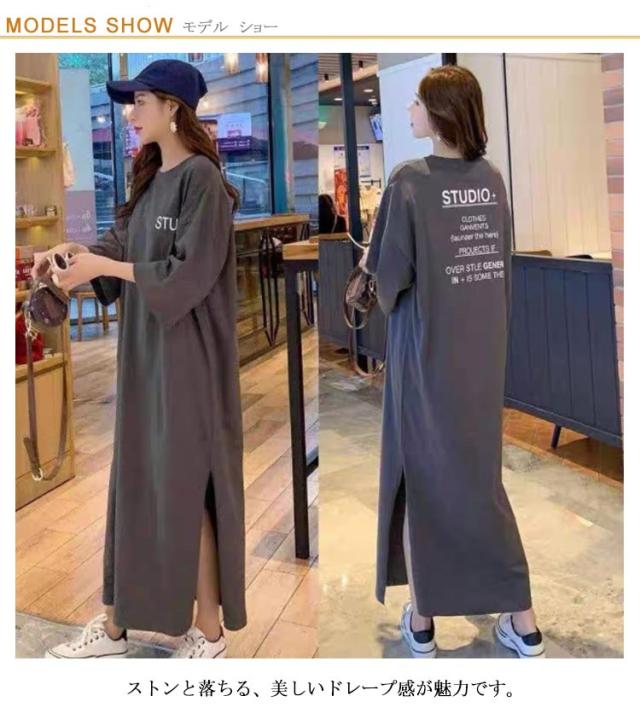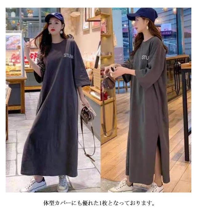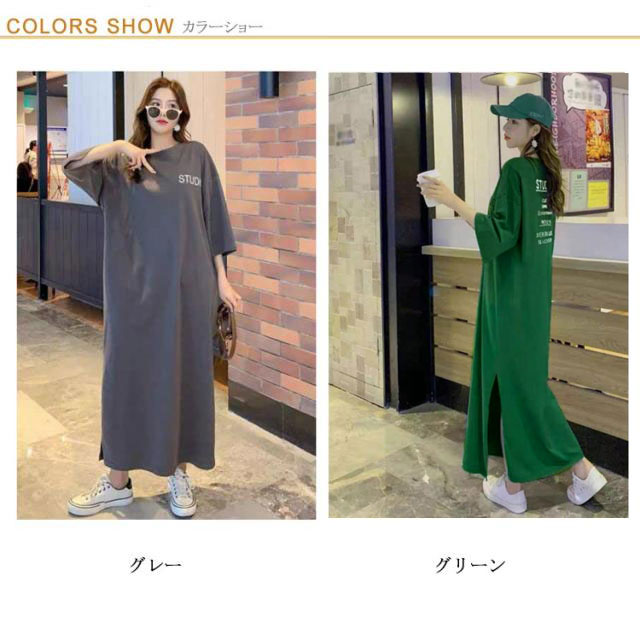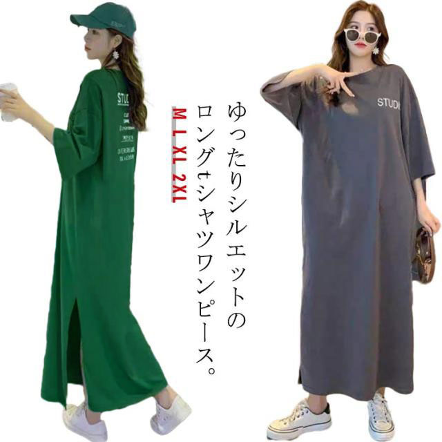 ワンピース Tシャツワンピース ロングワンピース マキシワンピース 春秋 Tシャツワンピ ロング レディース グレー グリーン 夏 7分袖 ロングワンピ Tシャツワンピ Tシャツ カットソー 七分袖 体型カバー 無地 ワンピ 大きいサイズ マタニティワンピース 秋 春 夏