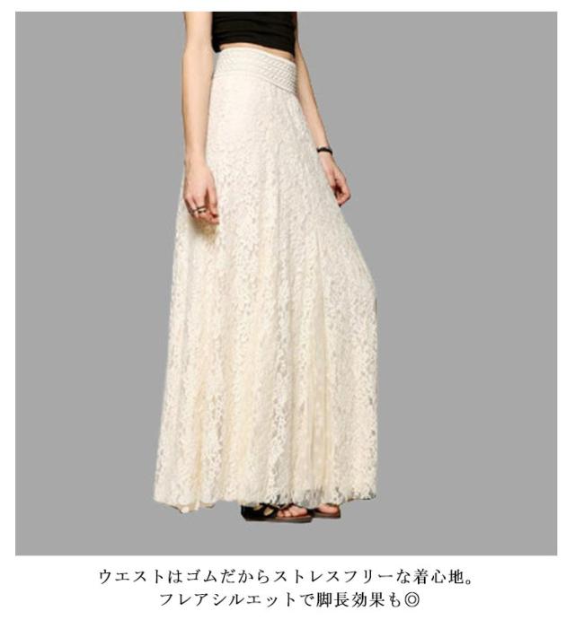 総レーススカート フレアスカート ロングスカート レーススカート 総レース 美ライン 揺れる レディース 花柄 フレアスカート きれいめ Aライン マキシ マキシスカート ウエストゴム 体型カバー 大きいサイズ 送料無料 ブラック アイボリー