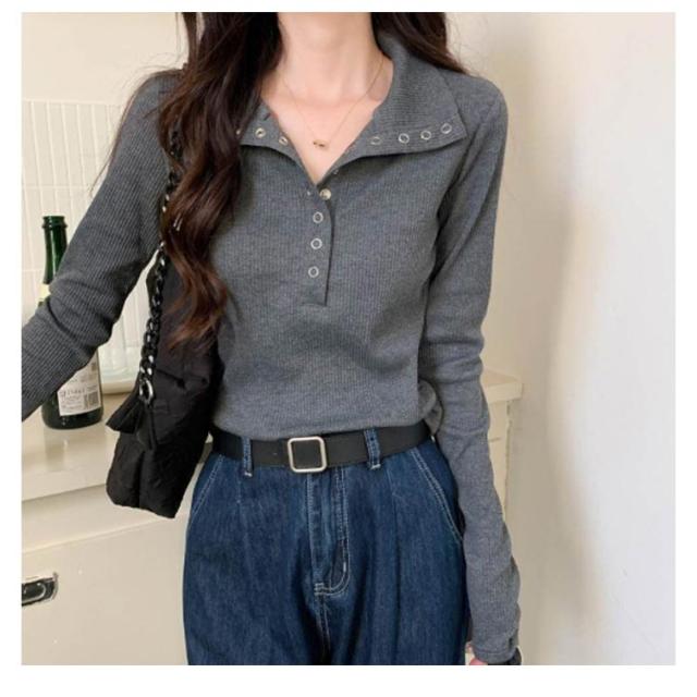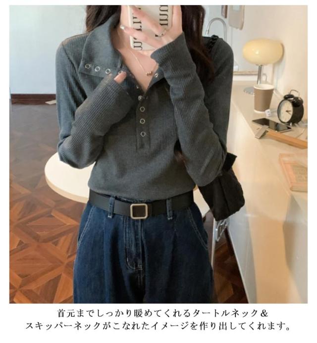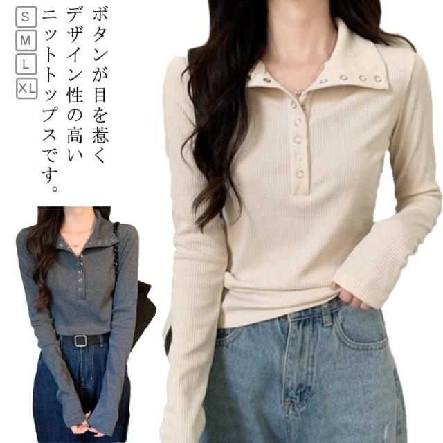 ハイネックニット ボタンネック 襟付きニット リブニット タートルネック タートルニット レディース ハイネック ニットトップス ニット セーター プルオーバー 長袖 きれいめ タイト 春 秋 冬 グレー ベージュ