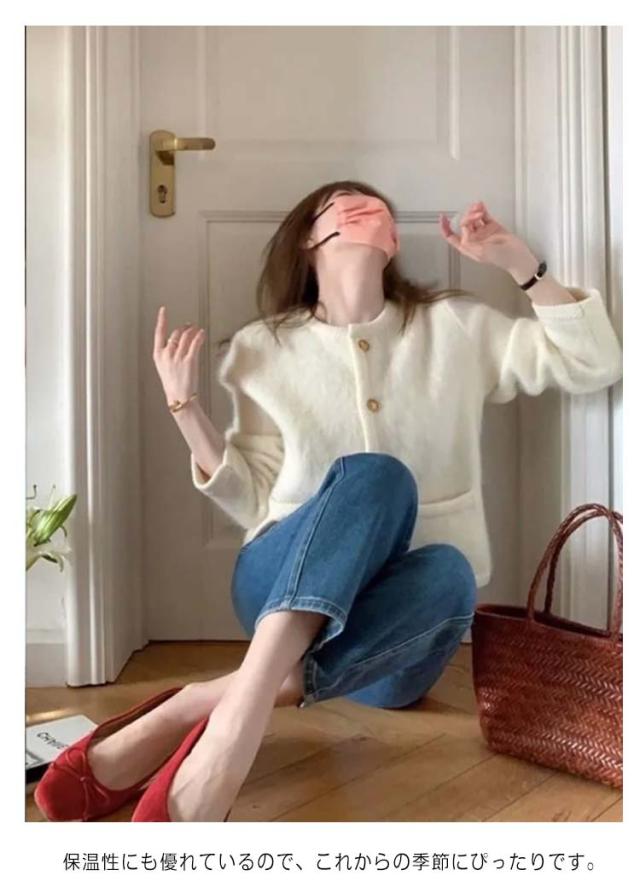 カーディガン レディース モヘア ふわふわ ニットカーディガン セーター トップス 長袖 クールネック ノーカーラー 前開き 羽織り あたたかい 保温 防寒 厚手 アウター 秋冬 秋服 冬服 送料無料